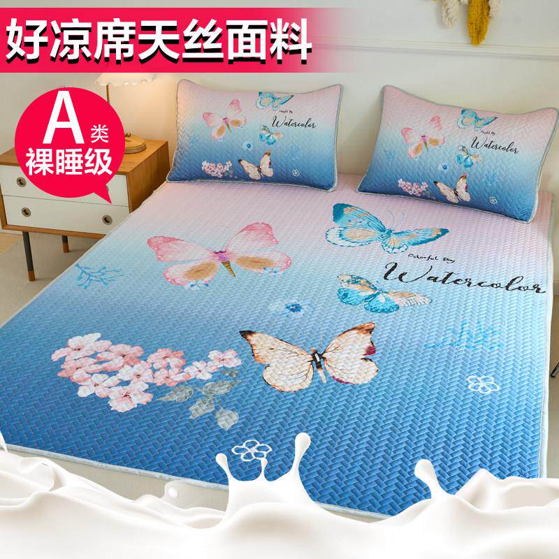 精选夏季冰丝凉席三件套2025新款夏天可机洗水洗空调舒适软席折叠