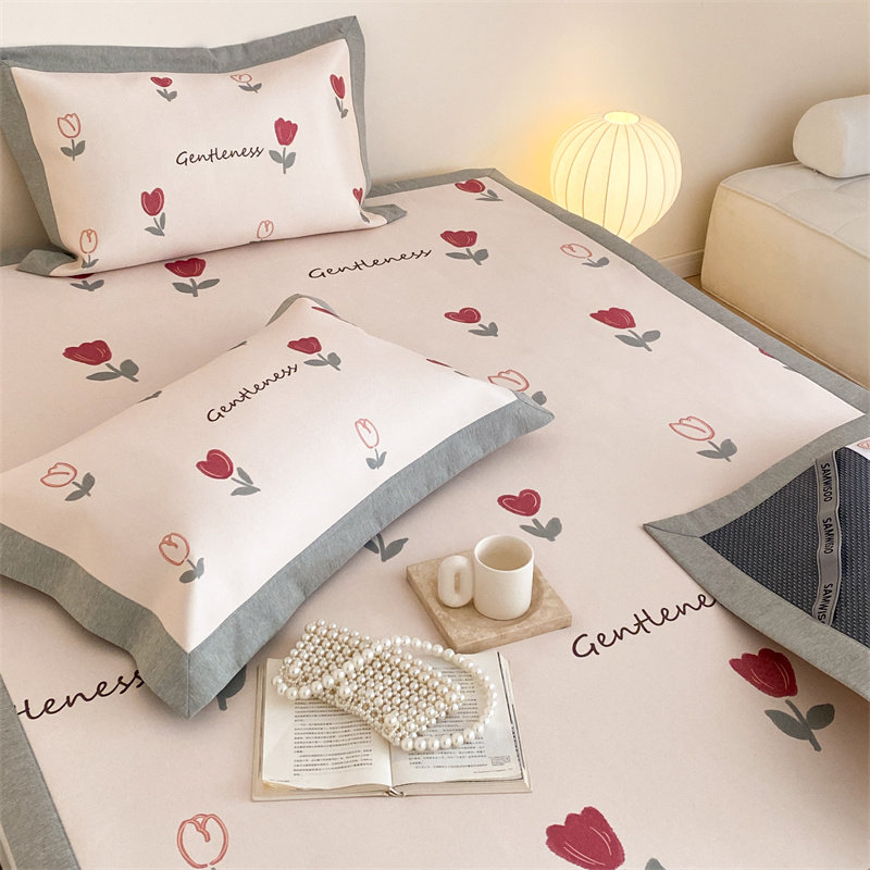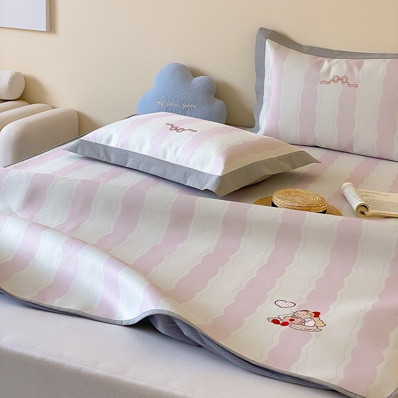 韩式Chic风卡通牛奶丝碳光凉席三件套凉感夏季冰丝空调软席套件