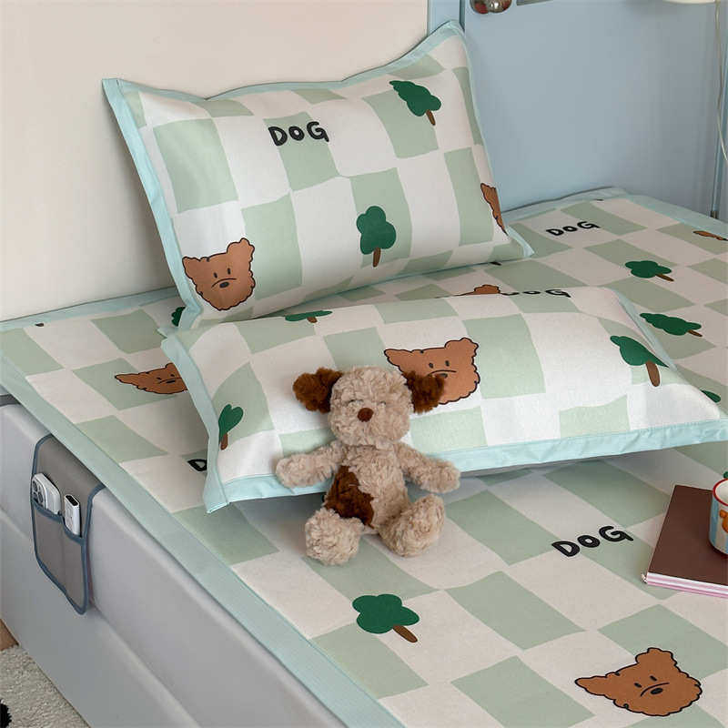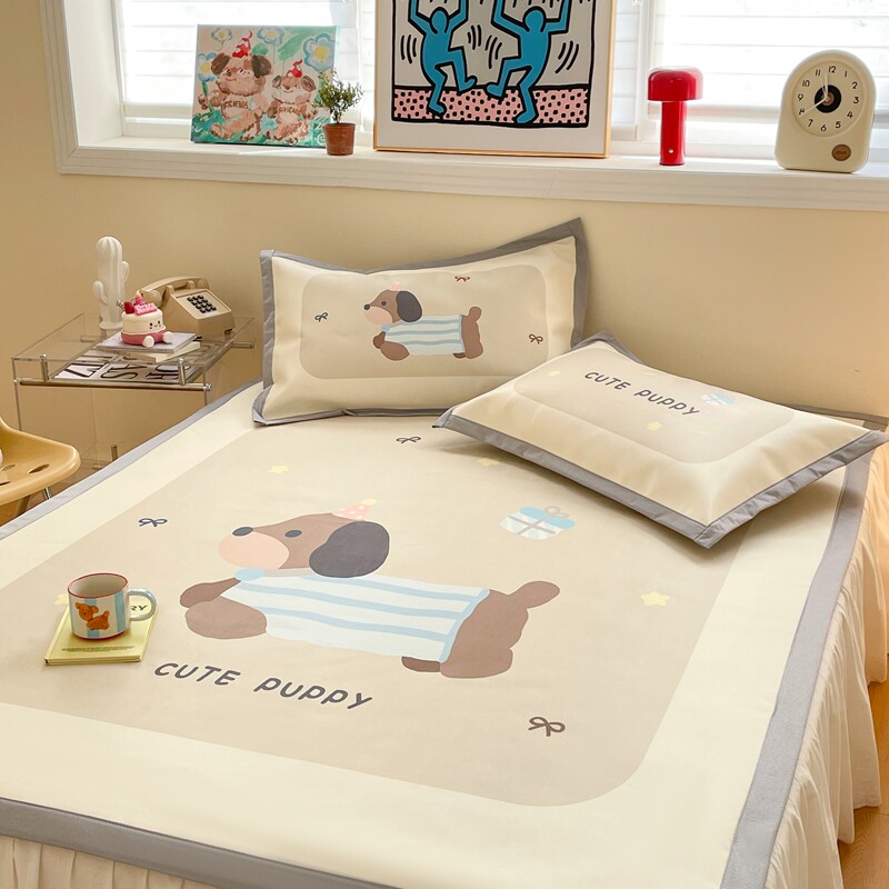 腊肠狗夏季冰丝凉席二三件套卡通学生宿舍夏天家用可折叠空调软席