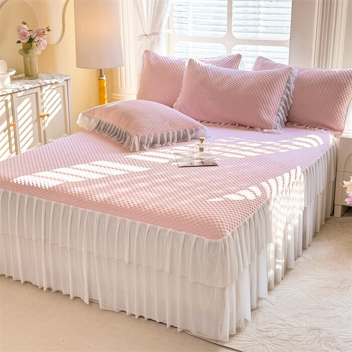 夏季冰丝豆豆凉席床裙三件套可机洗凉感空调席子学生宿舍床上用品