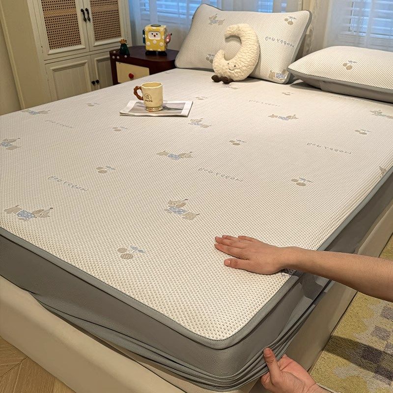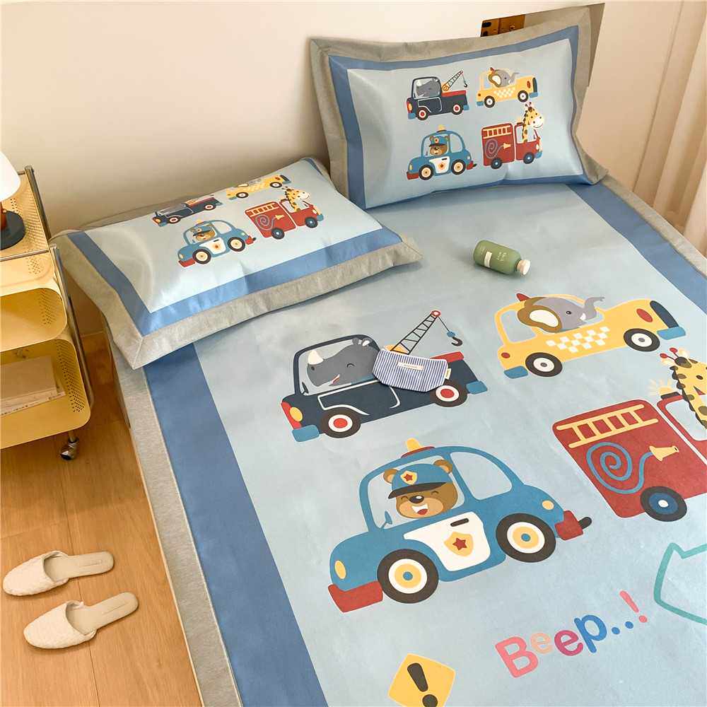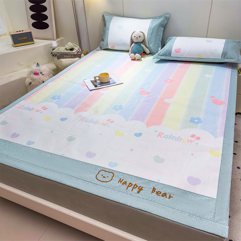 新的可爱的卡通风格的夏季垫冰丝绸垫三件套可洗适合床单空调垫夏