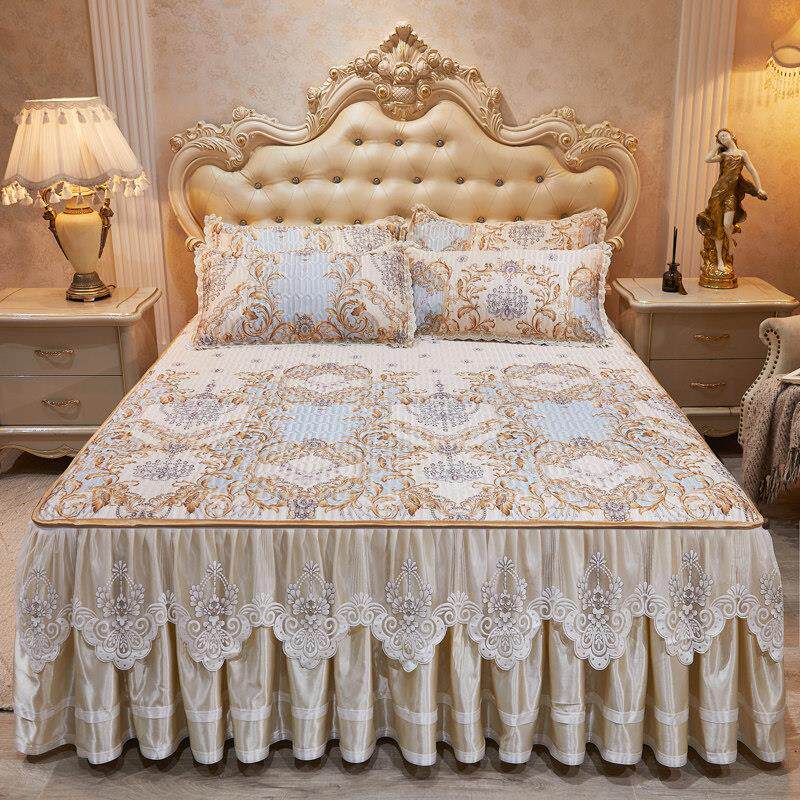 冰丝席欧式凉席三件套蕾丝床裙款空调软席床罩席子套件可脱卸1.8m