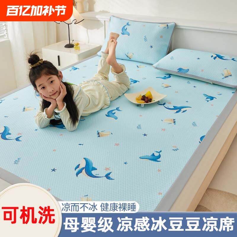 夏季冰豆豆冰丝凉席三件套母婴级凉感空调席子可机洗软凉床垫