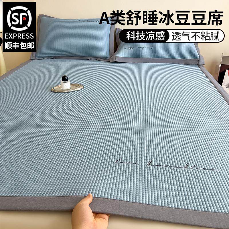 夏季冰丝凉席冰豆豆席学生宿舍单双人可机洗凉感空调软席子三件套
