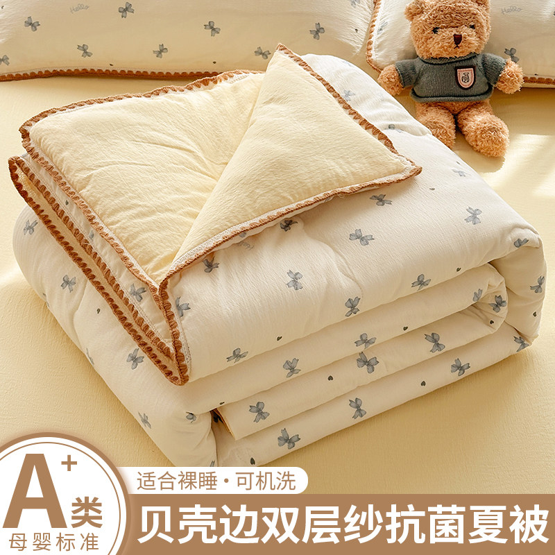 儿童薄款双层纯棉纱布睡衣夏季女童棉纱家居服男宝长袖空调服套装