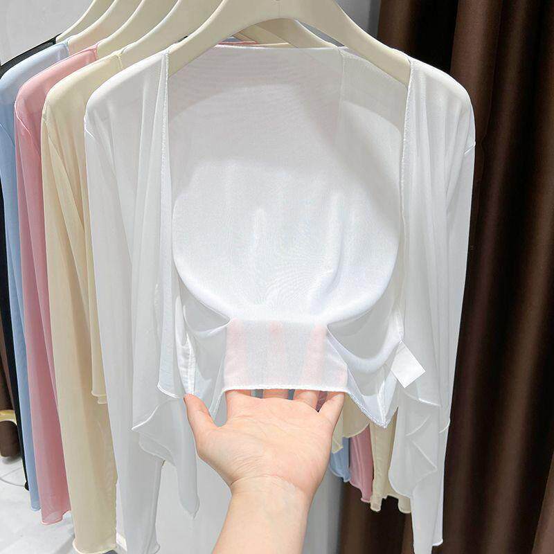 冰丝网纱防晒短款外搭开衫女2026夏季空调罩纱气质薄款披肩上衣潮
