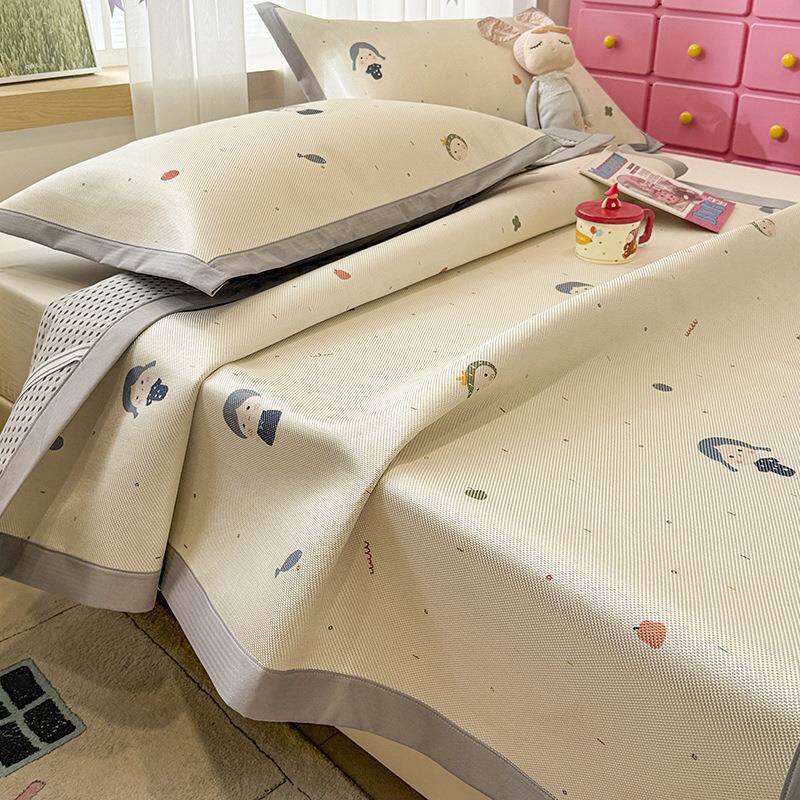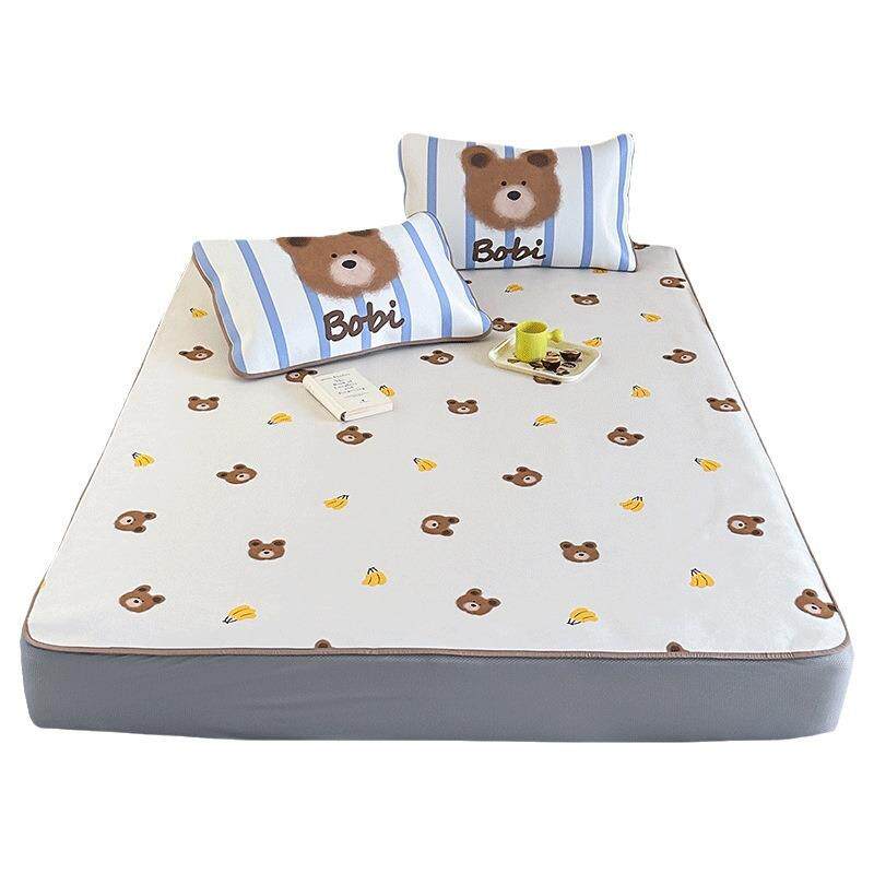2025新款卡通刺绣冰豆豆凉席三件套儿童床单夏天冰丝席空调软席子