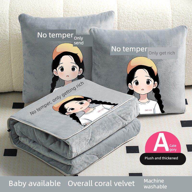 卡通手拎抱枕被子两用二合一学生宿舍办公室午睡折叠四季空调盖毯
