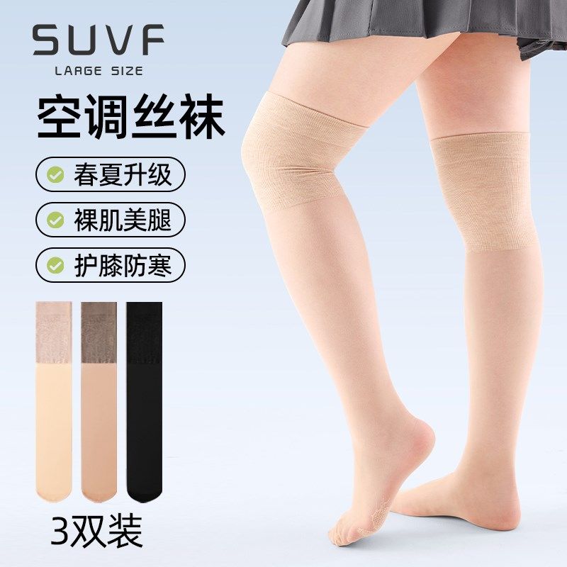 大码空调护膝过膝袜女防滑夏季小腿袜胖mm200斤防勾丝防寒长筒袜