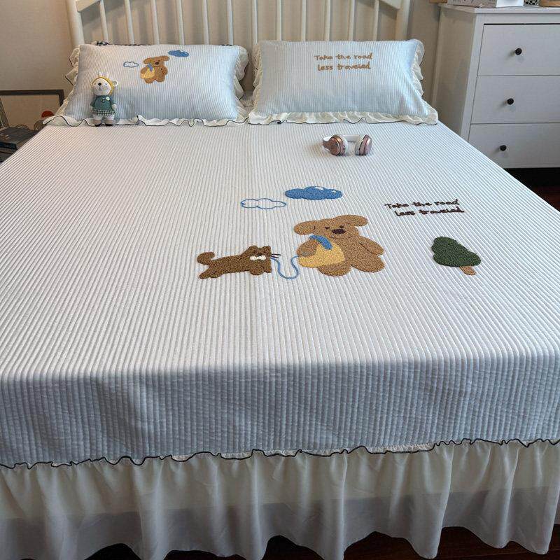 卡通刺绣冰丝床笠凉席三件套空调席子夏季凉感可折叠席梦思保护套