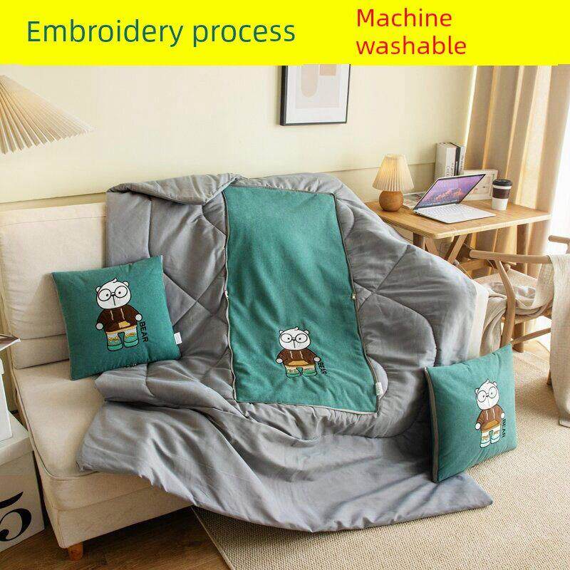 抱枕被子两用2024新款刺绣卡通可爱客厅午睡毯子办公室空调被靠枕
