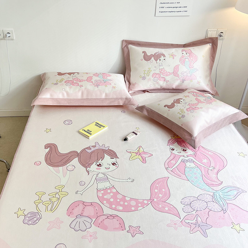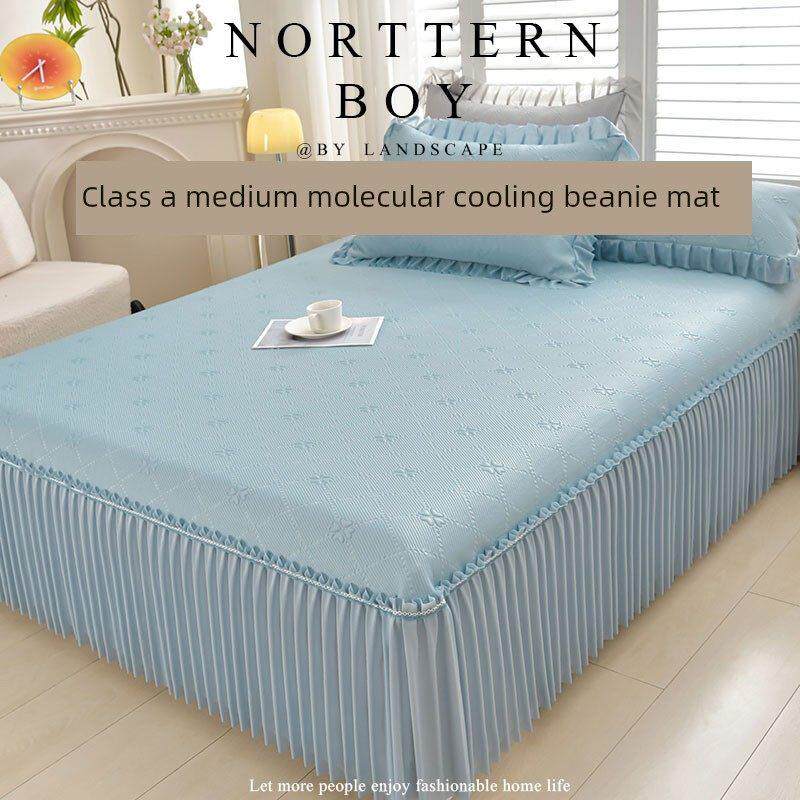 A类母婴级冰豆豆凉席三件套床盖床裙款夏季冰丝席空调软席凉感粉