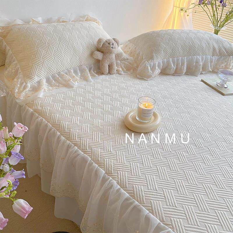 夏至|温柔米白仙女软凉席三件套夏季可水洗空调席床裙款1.5m1.8m