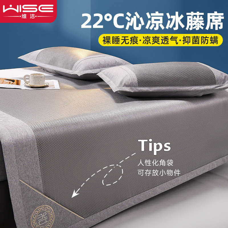 藤席冰丝凉席夏季三件套家用可水洗折叠草席子学生宿舍单人空调席