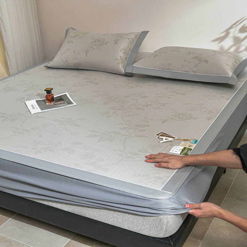 夏季800g冰豆豆冰丝席三件套可水洗凉席空调软席子提花双层纱包边