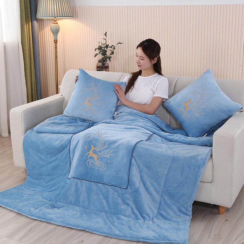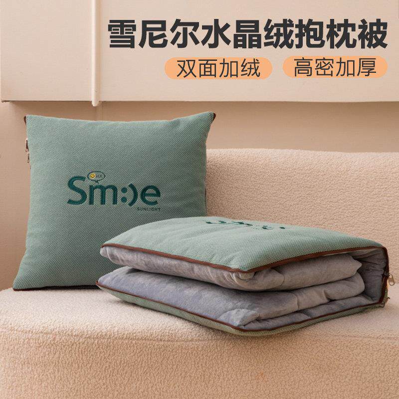牛奶绒空调被多功能抱枕被柔软手感面料超厚汽车载靠垫被子可机洗