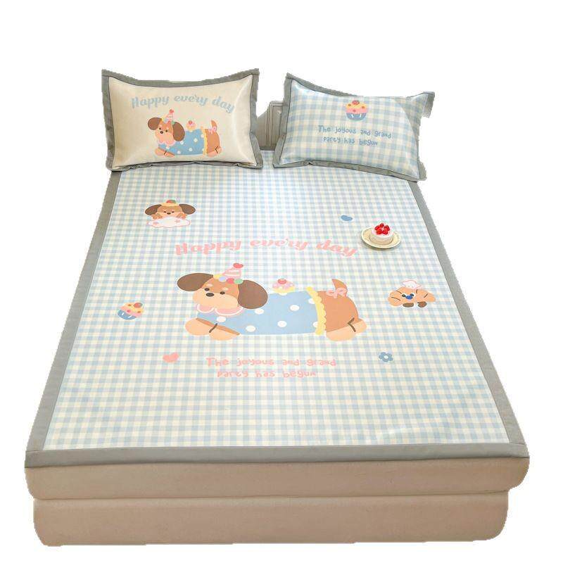 卡通可爱小象夏季冰丝席1.5m1.8m床席三件套可机洗空调席凉席软席