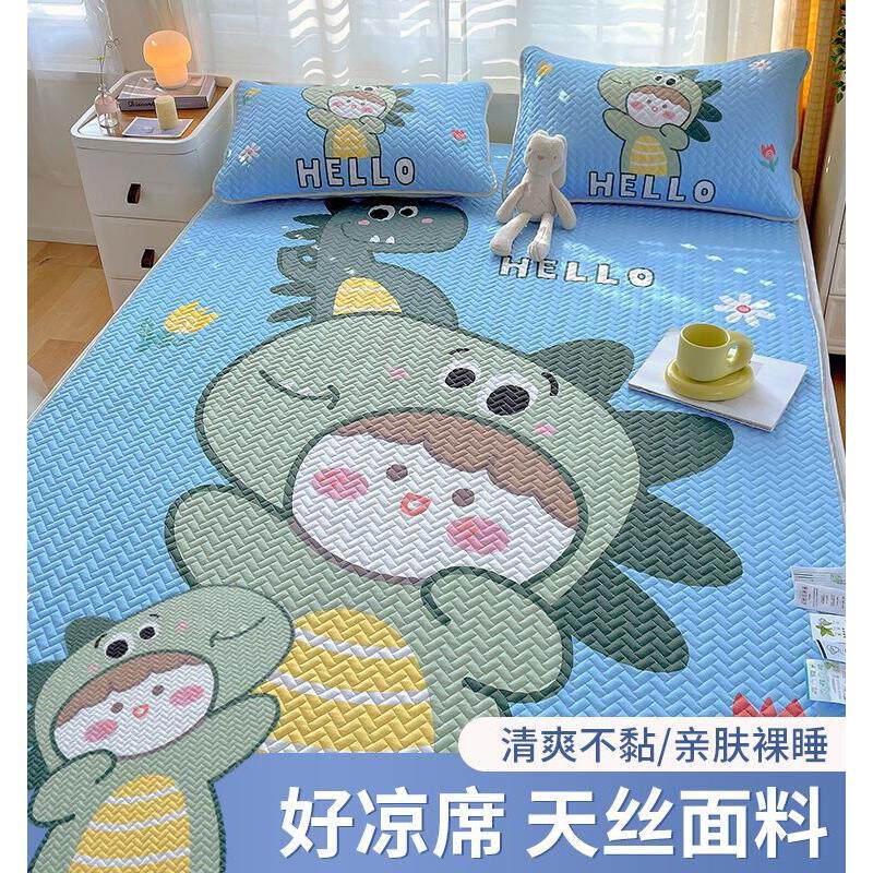 夏季新款A类母婴卡通印花冰丝凉席三件套凉感可水洗机洗空调凉席