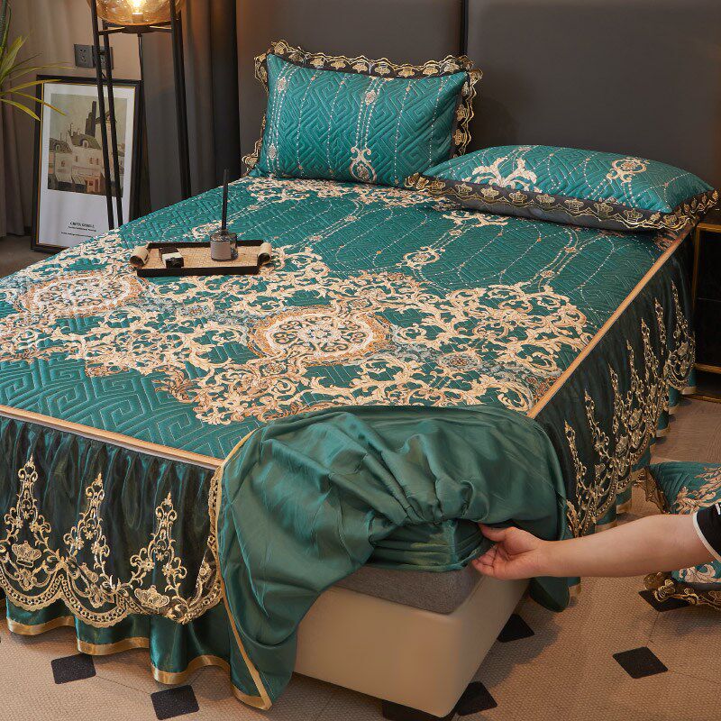 冰丝凉席三件套床裙款蕾丝边夏季新款空调凉席子防滑软凉席冰丝席