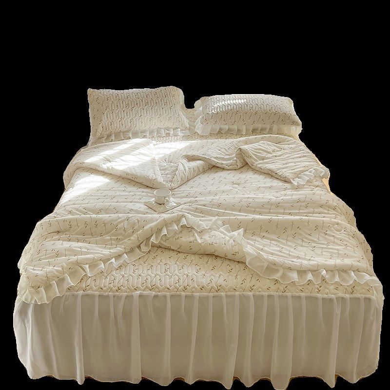 少女心水洗棉夏凉被四件套床笠款可机洗公主风空调被双人冷气被芯