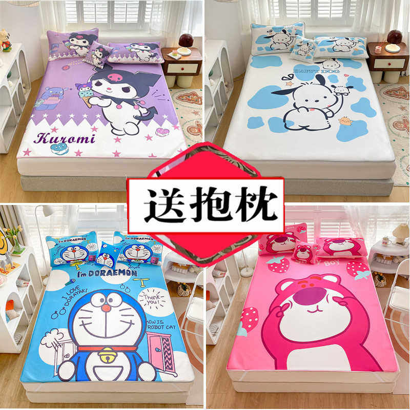 卡通可爱库洛米冰丝凉席三件套儿童宿舍夏季空调软席可折叠水洗女