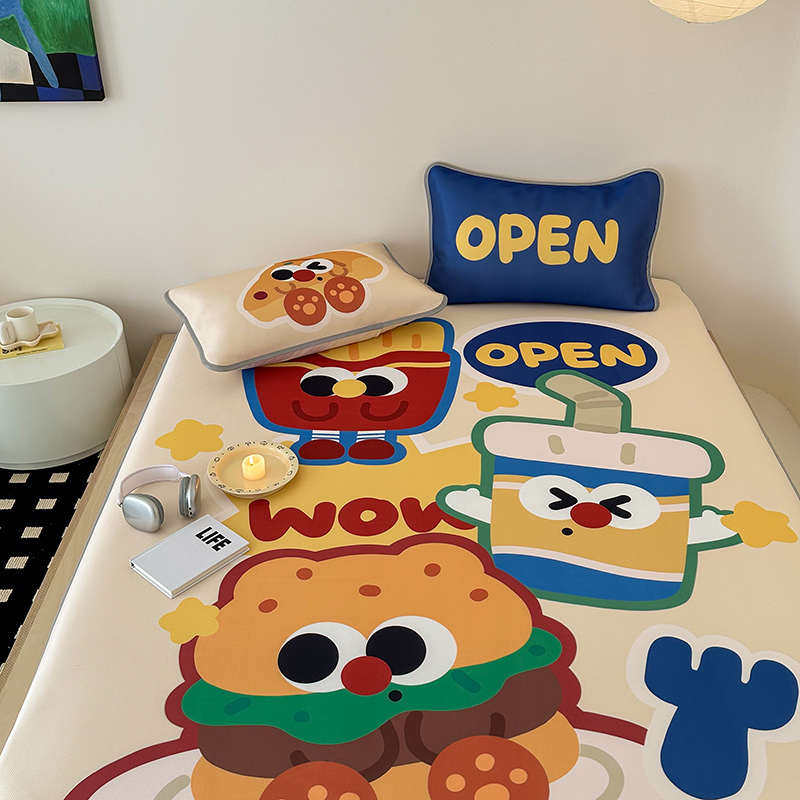 自带凉感のins卡通碳光牛奶冰丝席1.5m1.8米三件套可机洗空调席子
