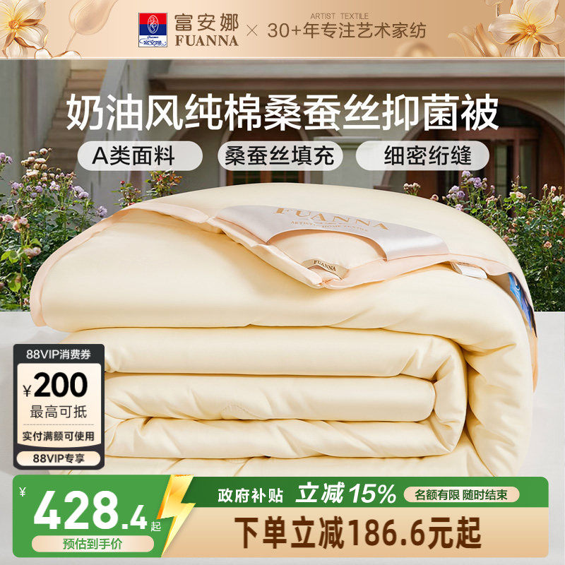富安娜被子60S纯棉冬被桑蚕丝被空调被春秋被二合一结婚被芯新品