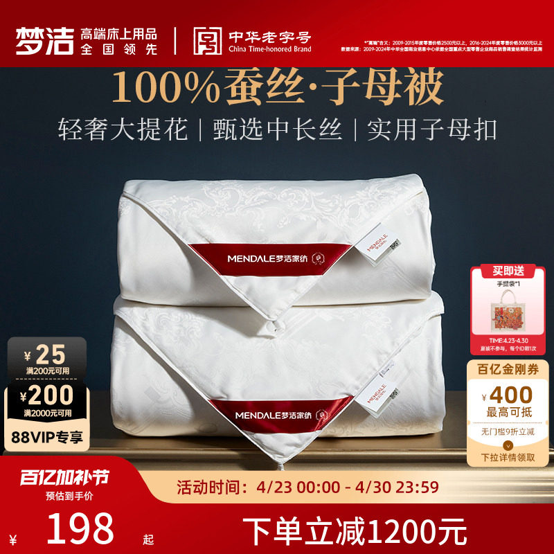 梦洁家纺蚕丝被春秋被被芯被子抗菌空调被二合一子母四季被喜被