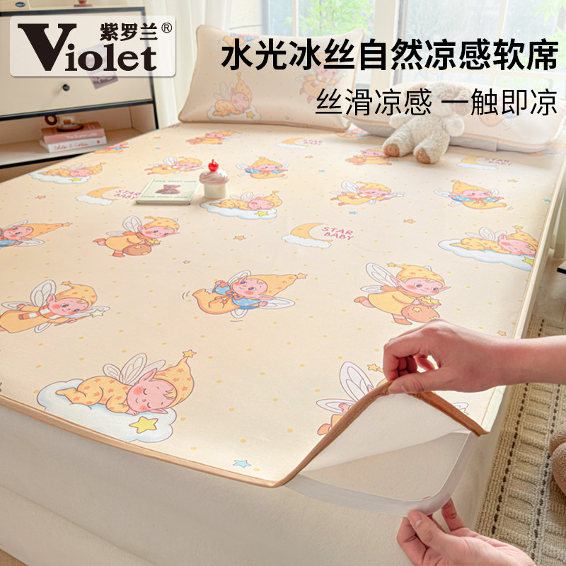 紫罗兰小版卡通印花小冰皮软凉席三件套可机洗宿舍床笠凉席空调席