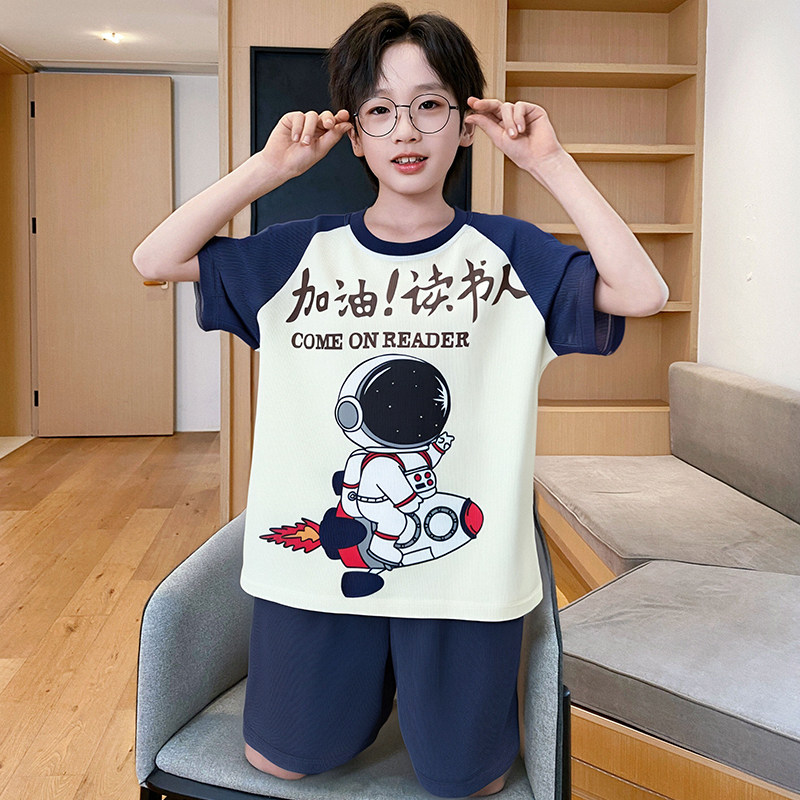 儿童睡衣冰丝卡通太空人2026夏季短袖薄款冰丝透气空调家居服套装