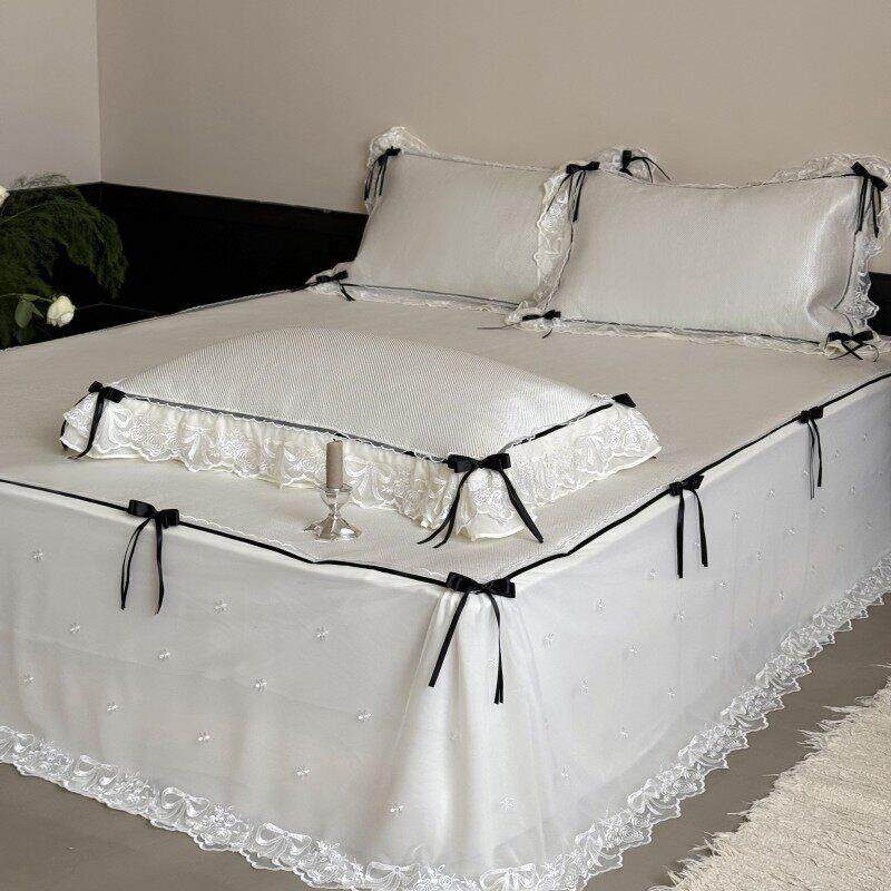 夏季公主风白色冰丝凉席三件套可水洗少女心蕾丝边床裙款空调软席