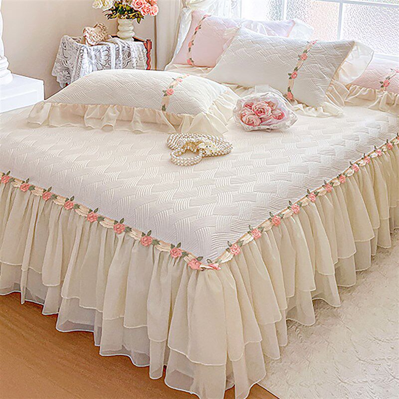 小清新夏季冰丝凉席三件套可水洗少女心刺绣床裙款1.8米空调软席