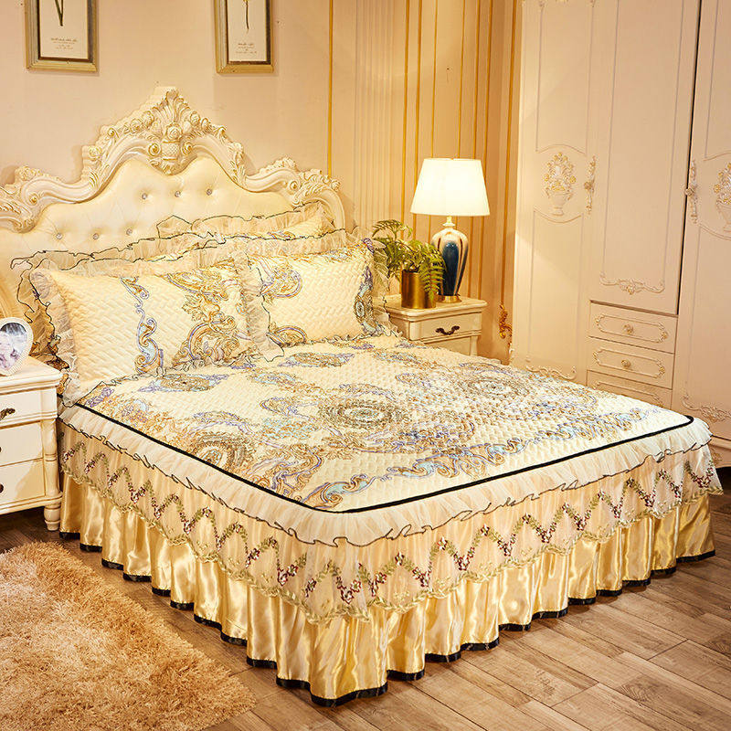 高档灰色华夫冰丝垫三件套2025新公主风格床裙风格冰藤空调垫