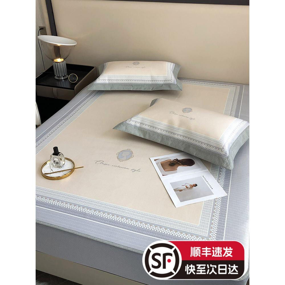 夏季轻奢风数码印花凉席三件套可水洗可机洗裸睡床笠款空调席子