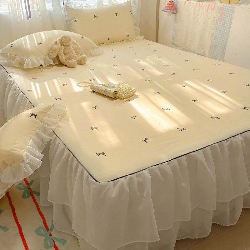 夏季冰丝凉席三件套床裙款2025新款公主风可机洗凉感空调软席子