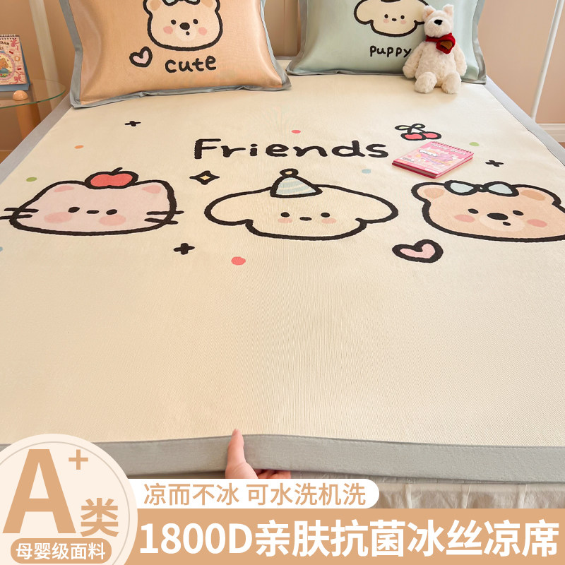 夏季冰丝凉席三件套可机水洗凉感床单人儿童学生折叠空调夏天席子