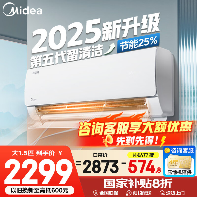 美的(Midea)空调挂机 酷省电 大1.5匹1匹空调新一级能效变频冷暖除湿家用卧室壁挂式空调国家补贴20%以旧换新 大1.5匹 【酷省电Q】2025款新品