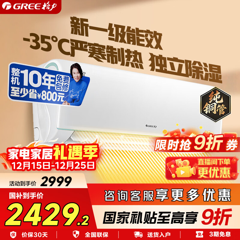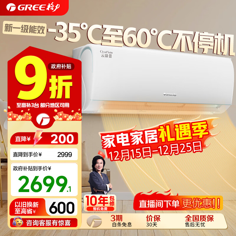 格力(GREE)空调挂机云锦三代/二代新一级能效变频冷暖巨省电 自清洁 WIFI壁挂式卧室空调挂机 家电补贴 云锦III 三代新升级款 大1匹