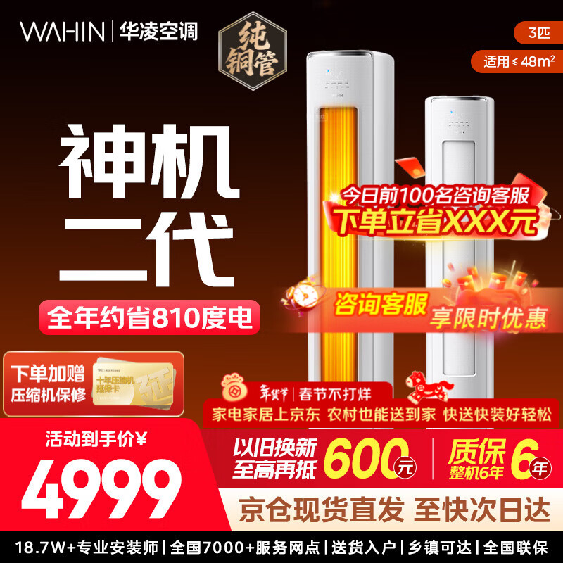 华凌空调 双排神机二代 3匹超一级能效 大风口大风量 液冷散热智能控温家用客厅立式柜机空调 以旧换新 3匹一级能效新品神机二代72HEII