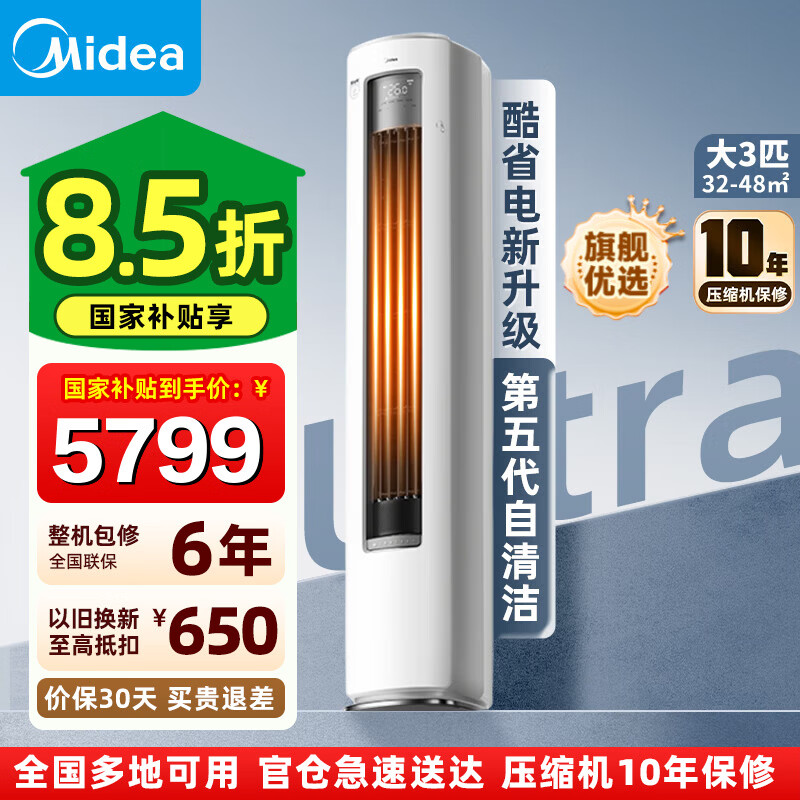美的(Midea)【国家补贴】空调柜机 酷省电Ultra 新一级能效AI酷省电技术 客厅立式 变频冷暖除湿 以旧换新补贴 酷省电Ultra 大3匹 冷暖 一级能效 顶配