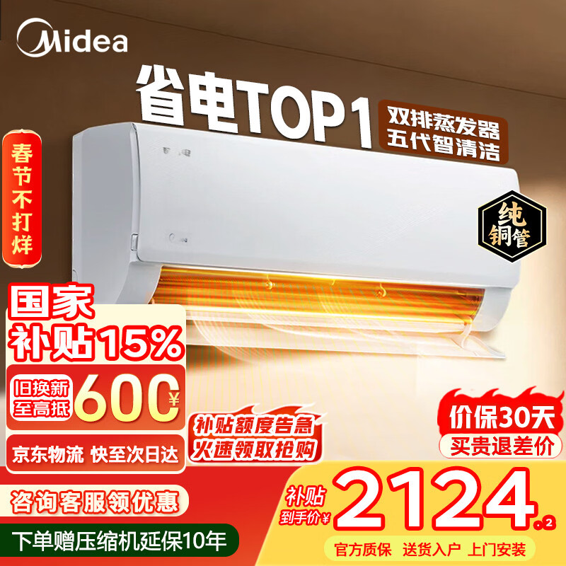 美的(Midea)空调大1.5匹挂机酷省电二代Pro新一级能效变频节能冷暖两用壁挂式卧室空调防直吹低噪WiFi智控补贴 酷省电2025版 大1.5匹 全新升级 五代智清洁