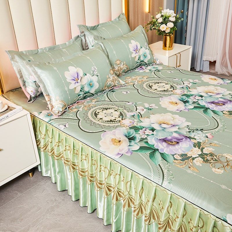 冰丝凉席三件夏季床裙款床罩可机洗水洗折叠空调席软席子