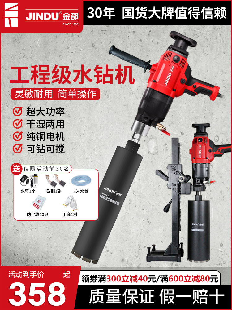 金都无刷水钻机大功率混凝土空调离合打孔机打洞开孔金刚石钻孔机
