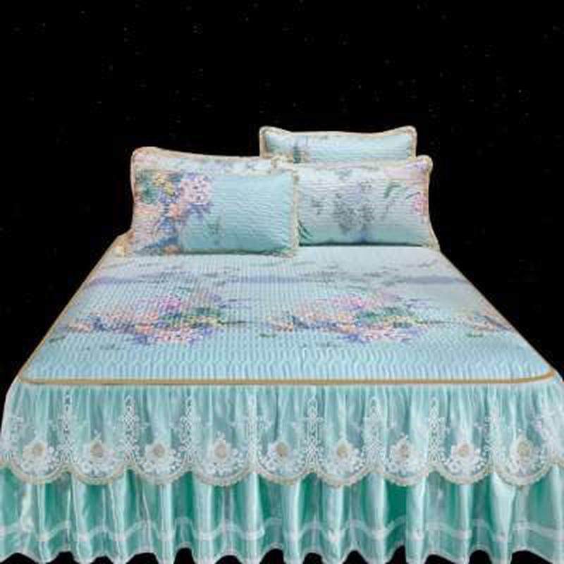 202新款高档类抗菌刺绣冰丝席三件可拆卸洗床裙款空调软席子