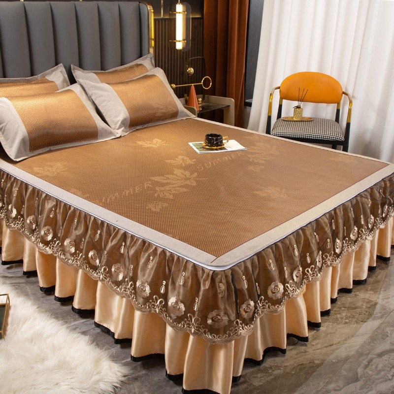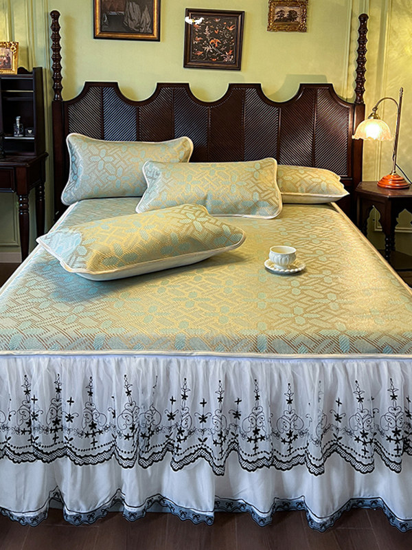 夏季新冰藤垫三件套床裙式可拆卸蕾丝冰丝垫防滑空调软垫