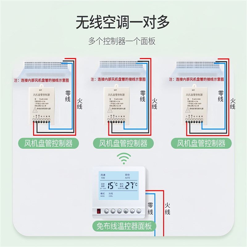 免布线温控器中央空调暗装暗藏式控制面板水风机盘管无线线控器