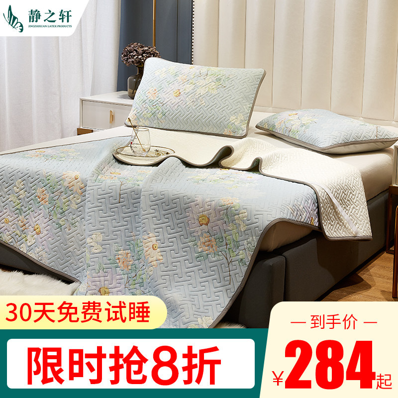 静之轩泰国乳胶凉席三件套薄床垫夏季冰丝席可水洗折叠空调席子