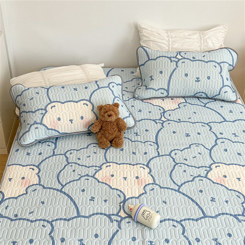 夏季冰丝乳胶床垫凉席家用床上三件套可水机洗折叠空调软席子防滑