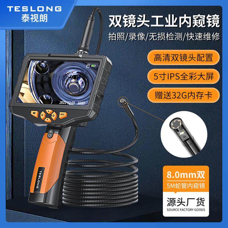 泰视朗8mm双镜5米防水内窥镜带屏 手动转向汽车空调工业内窥镜