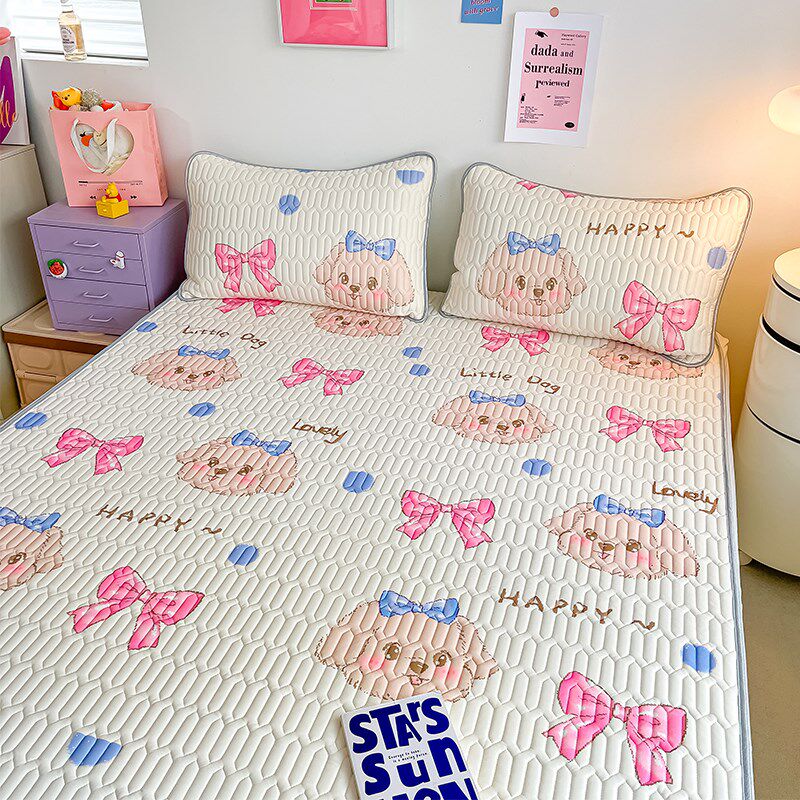 高档乳胶凉席可机洗卡通床上三件套宿舍冰丝柔感可爱空调软席2米